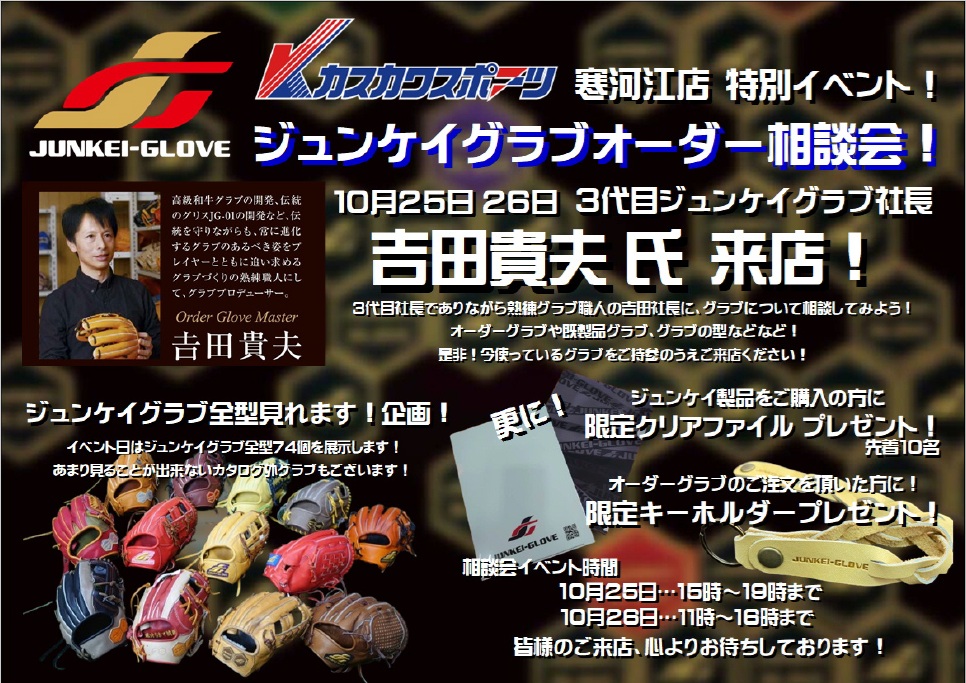 山形県のカスカワスポーツ寒河江店にて東北で初めてグラブオーダー相談会の開催が決まりました!!